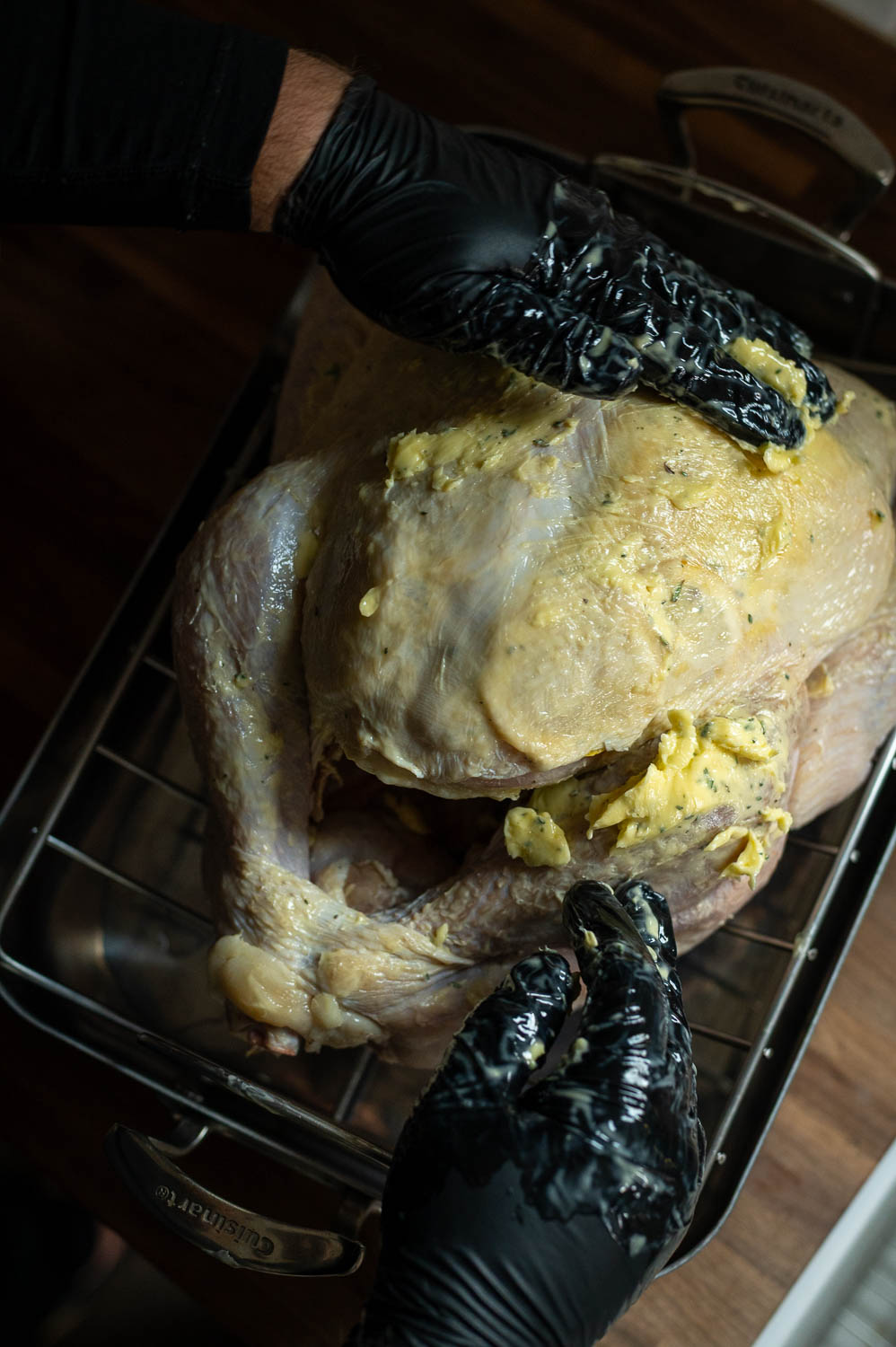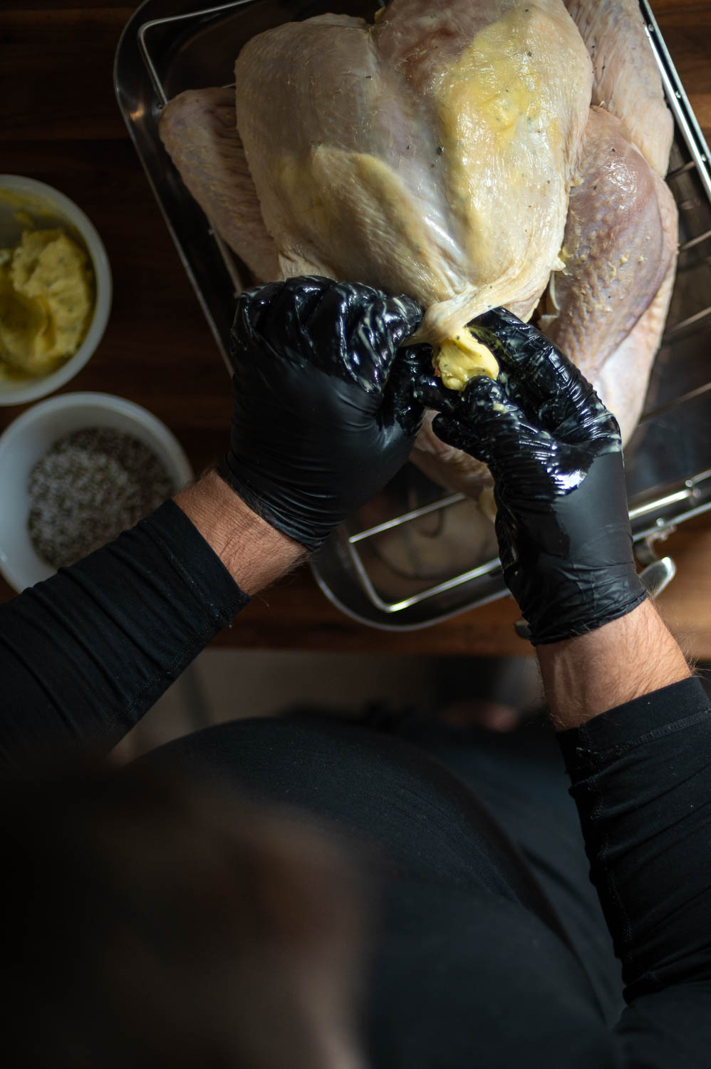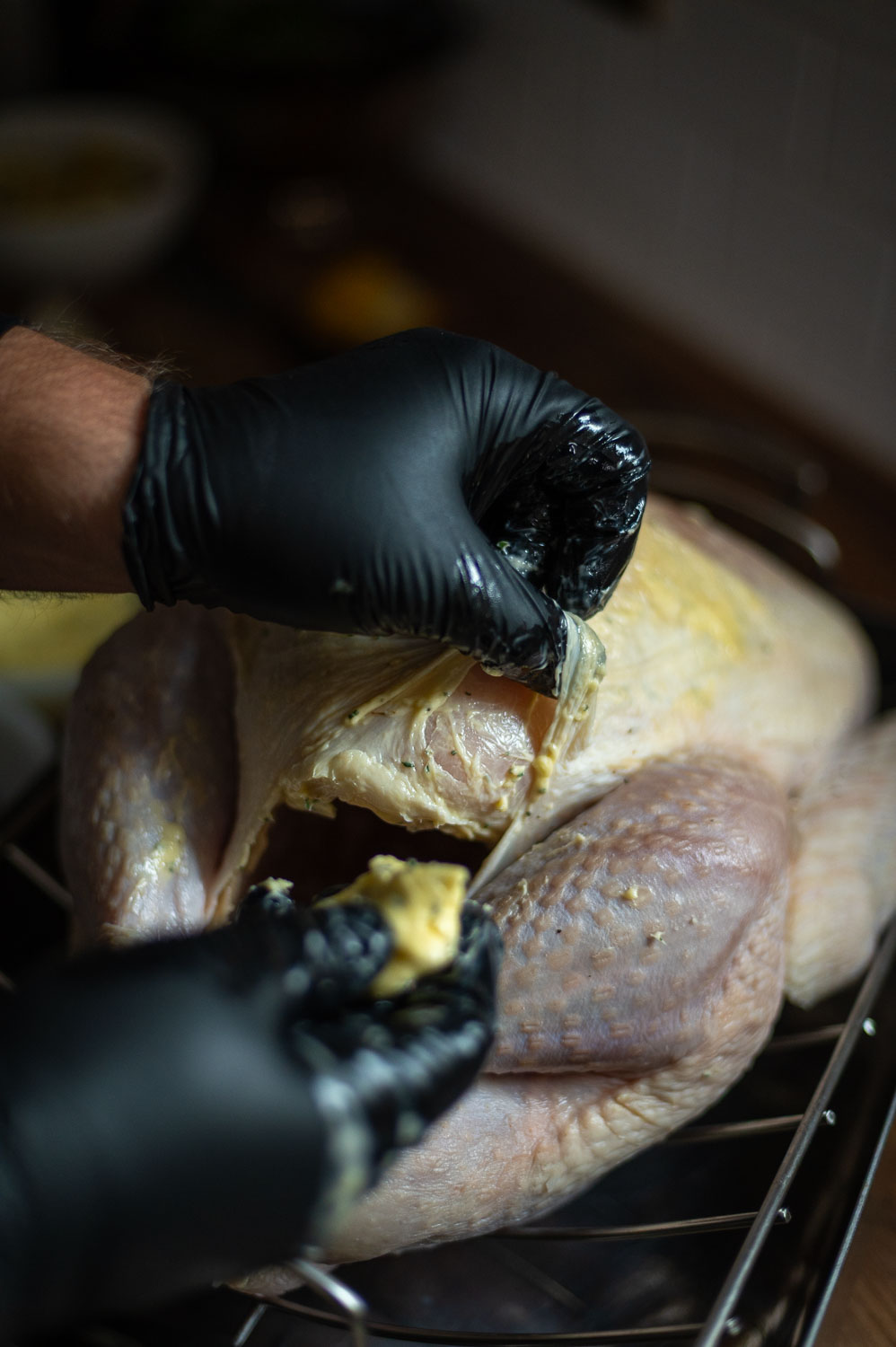 The air chilling process can make this more challenging, but if you’re patient and gentle and use enough butter you can get the butter just about everywhere under the skin and completely coating both breasts.