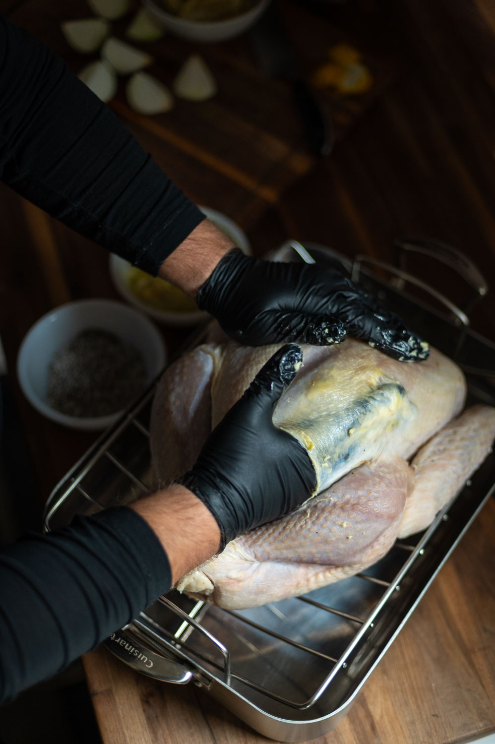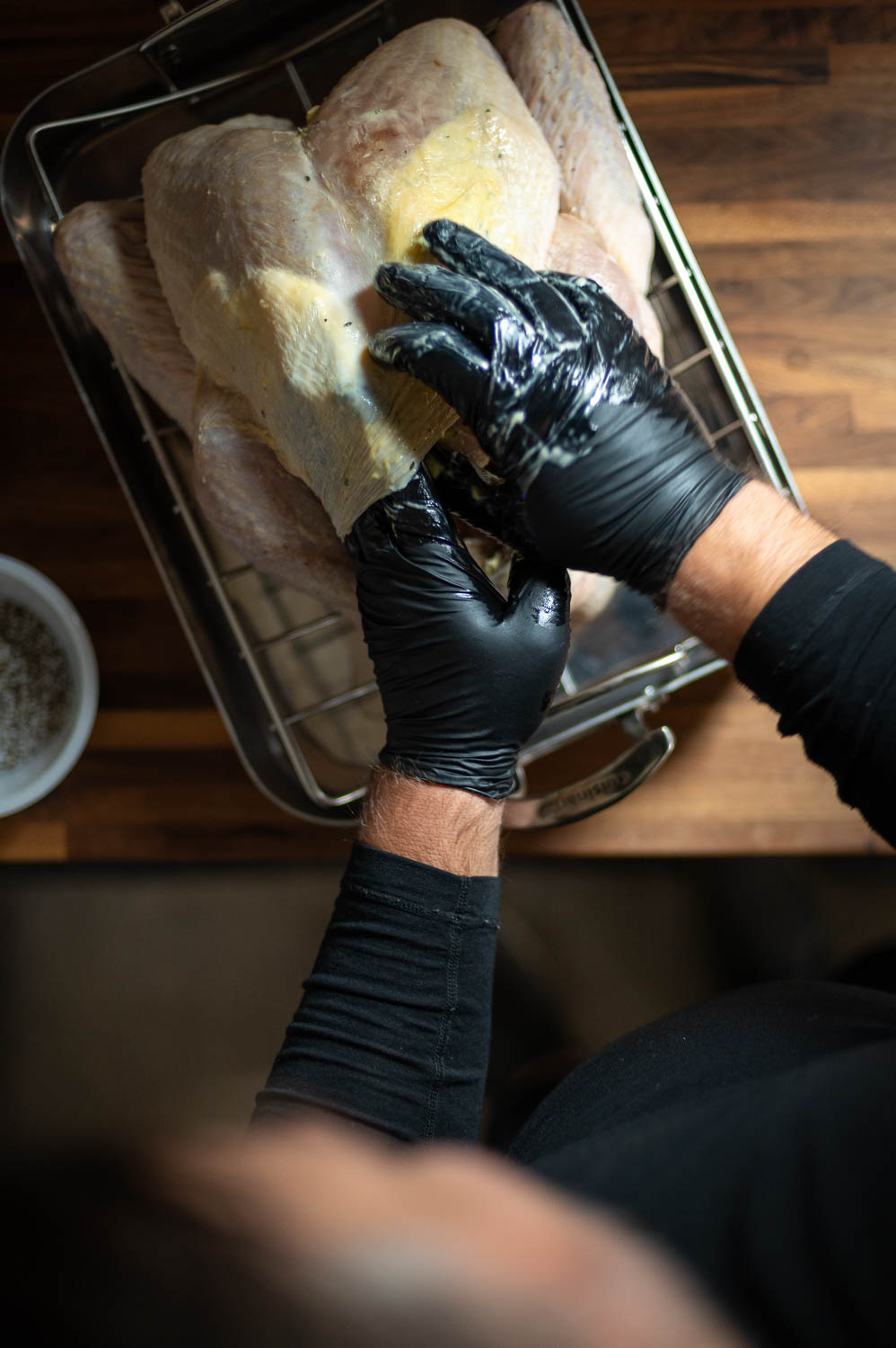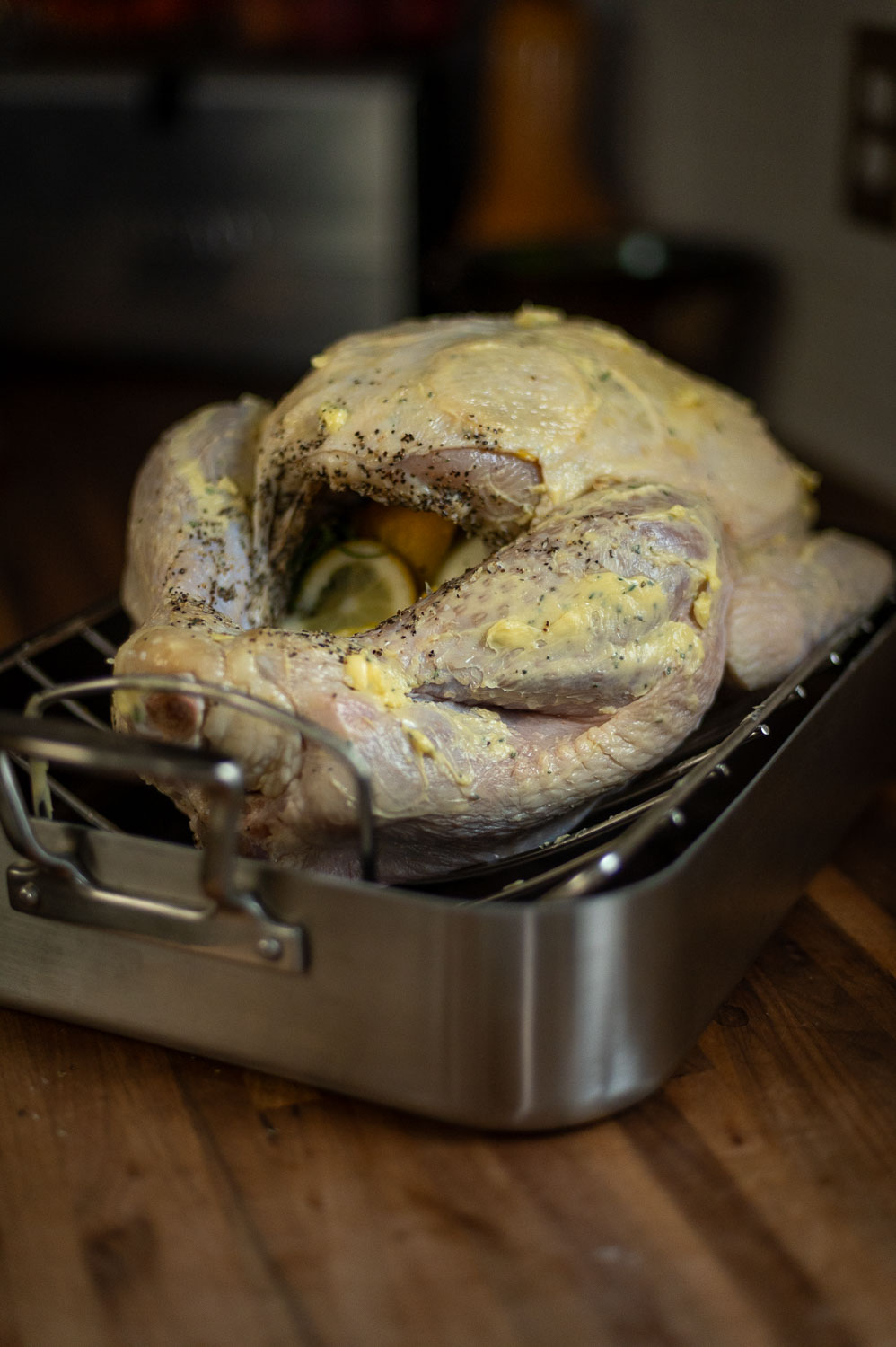 The air chilling process can make this more challenging, but if you’re patient and gentle and use enough butter you can get the butter just about everywhere under the skin and completely coating both breasts.