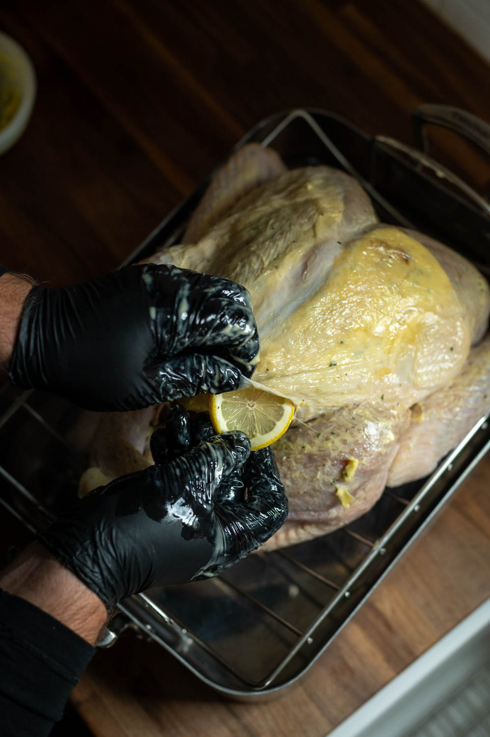 Step Ten: Squeeze Lemon Juice Over The Turkey & Then Stuff The Turkey With Lemons, Herbs & Onions