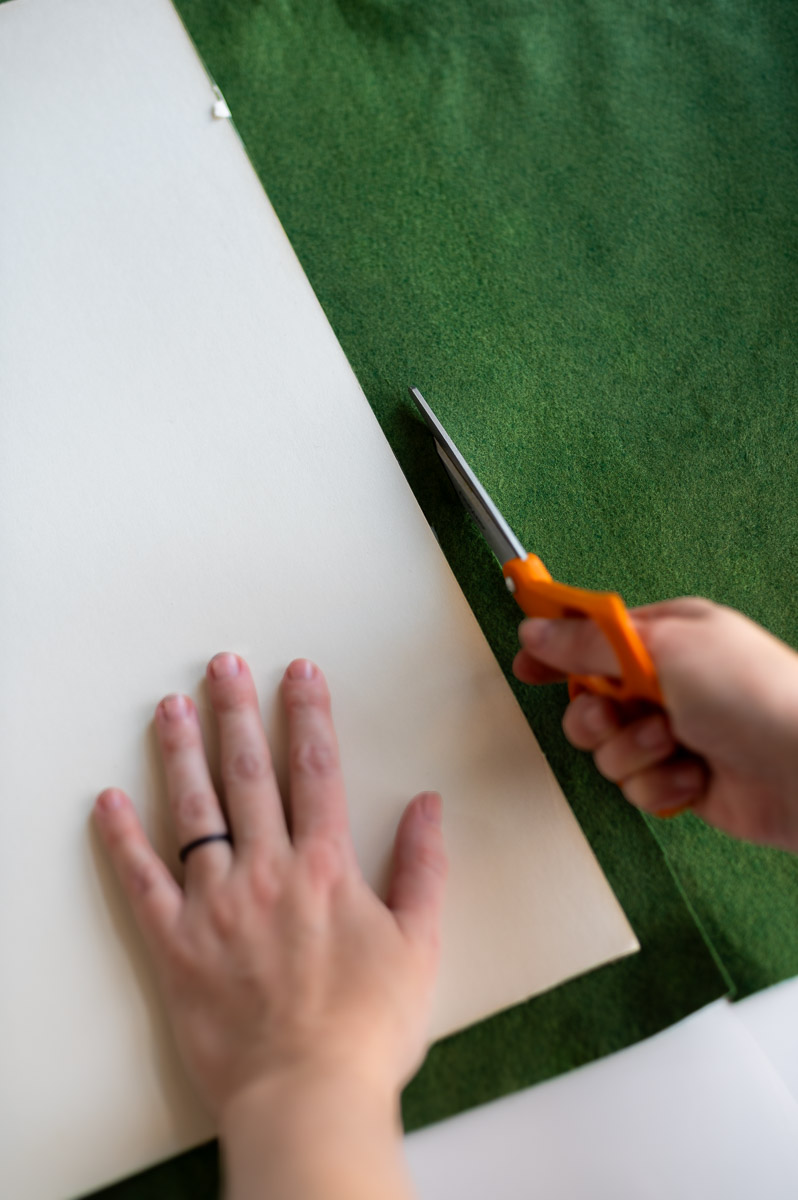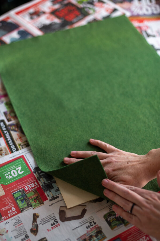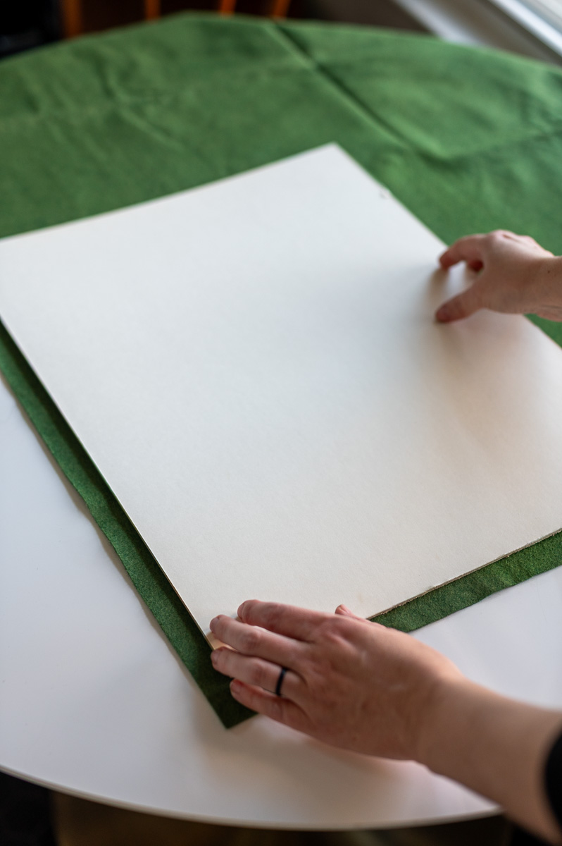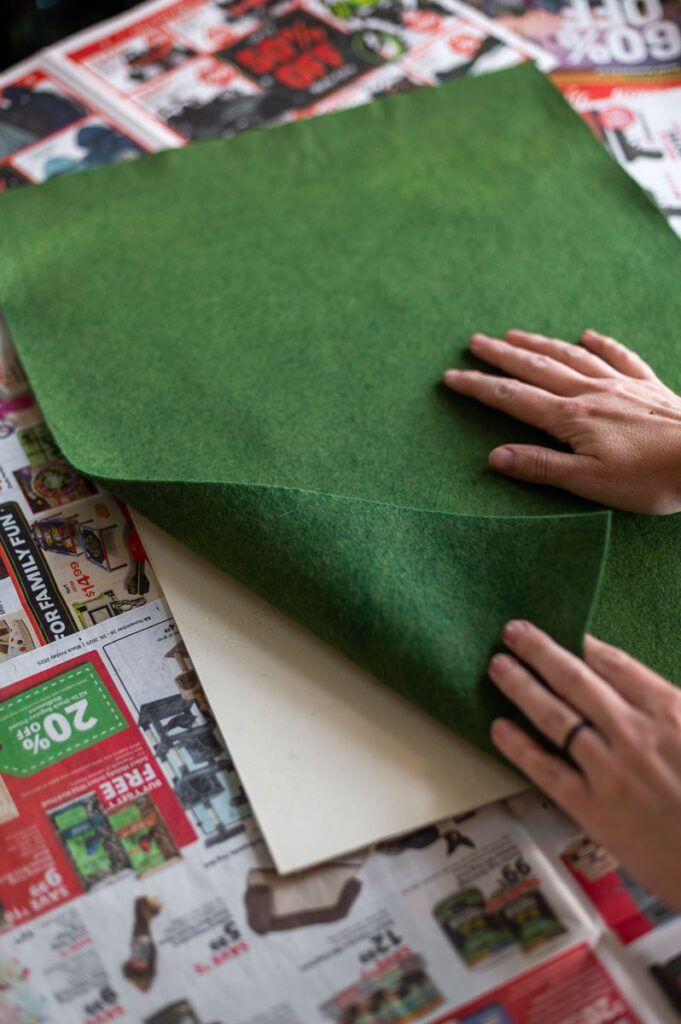 - I chose to use a vintage looking moss green felt for the background of my artwork, but you can use any color or fabric you like best.
