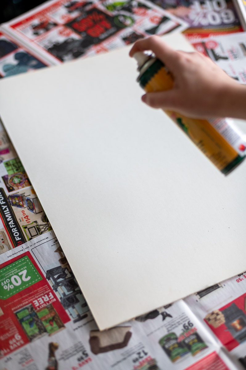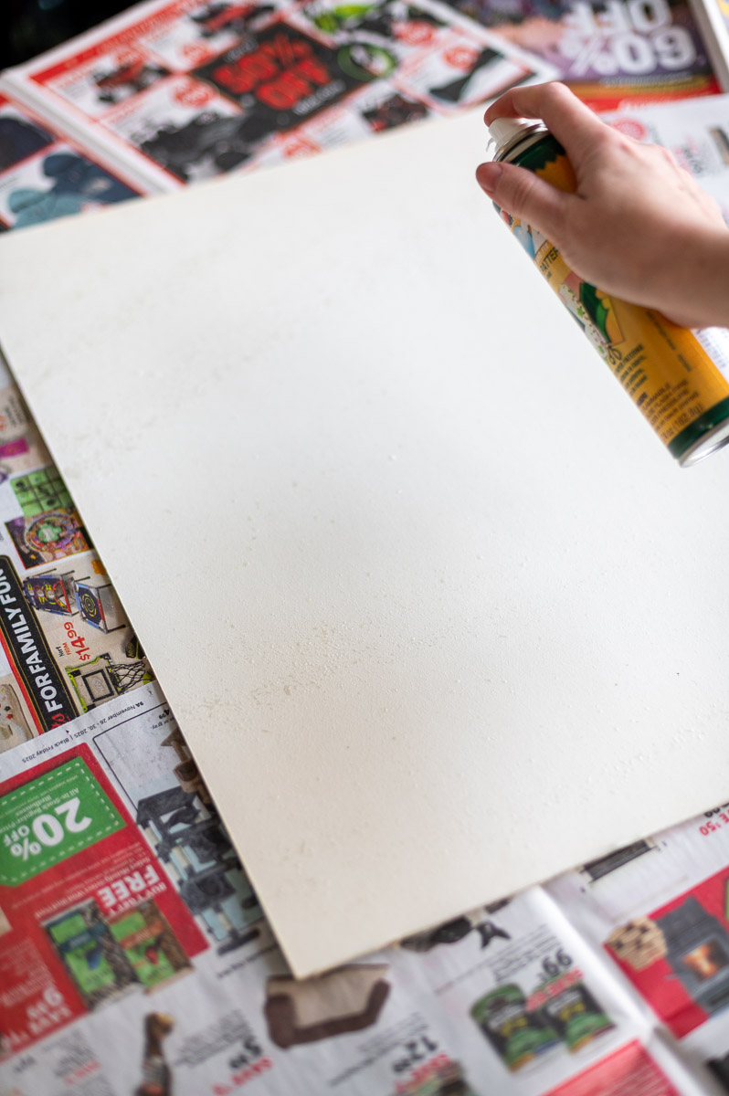 Pro Tip: Be sure to follow the directions on the back of the adhesive you are using and lay down newspaper to protect your work surface from any overspray.