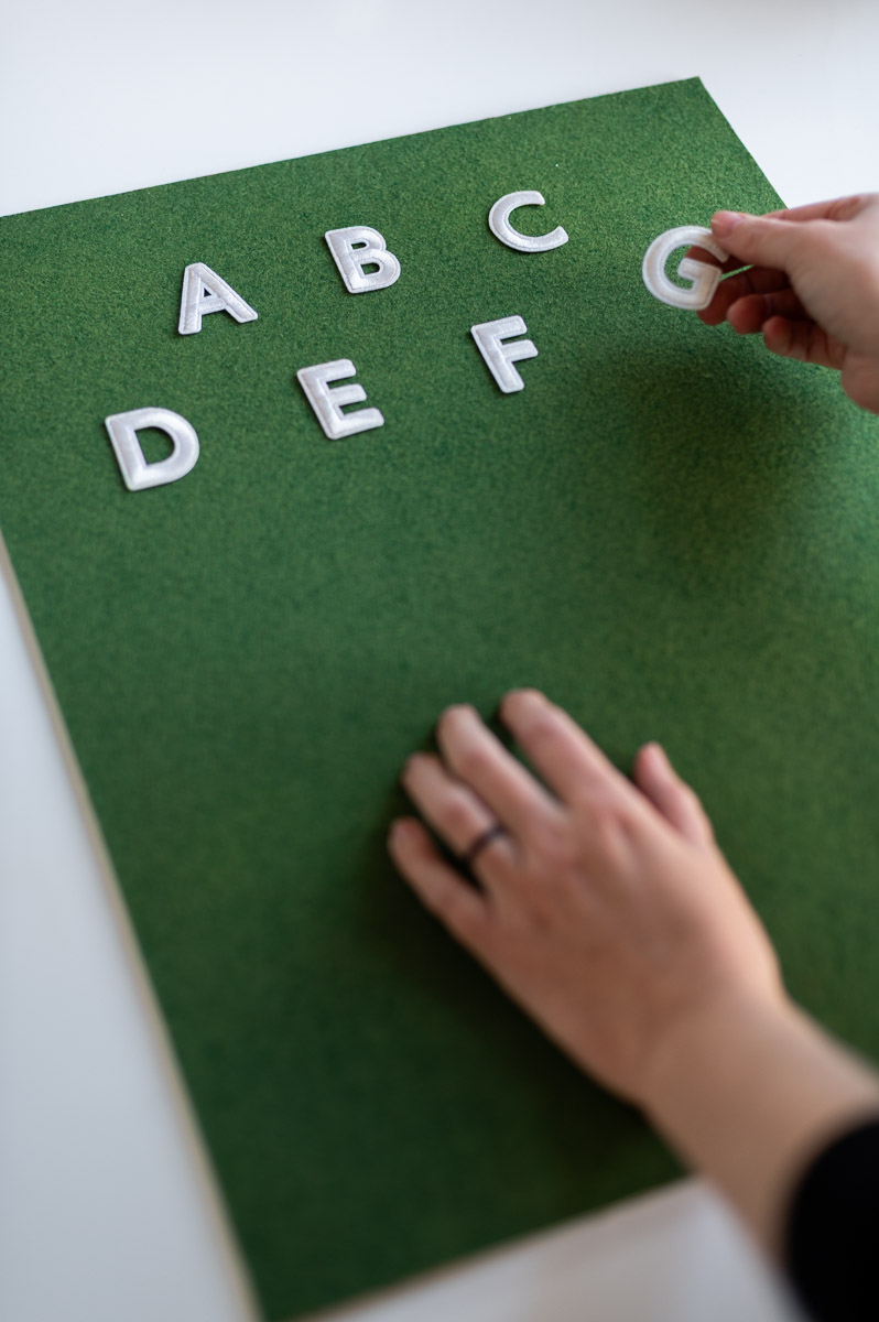 Pro Tip: Use a few straight pins to help hold your letters in place while you get everything adjusted how you want it.