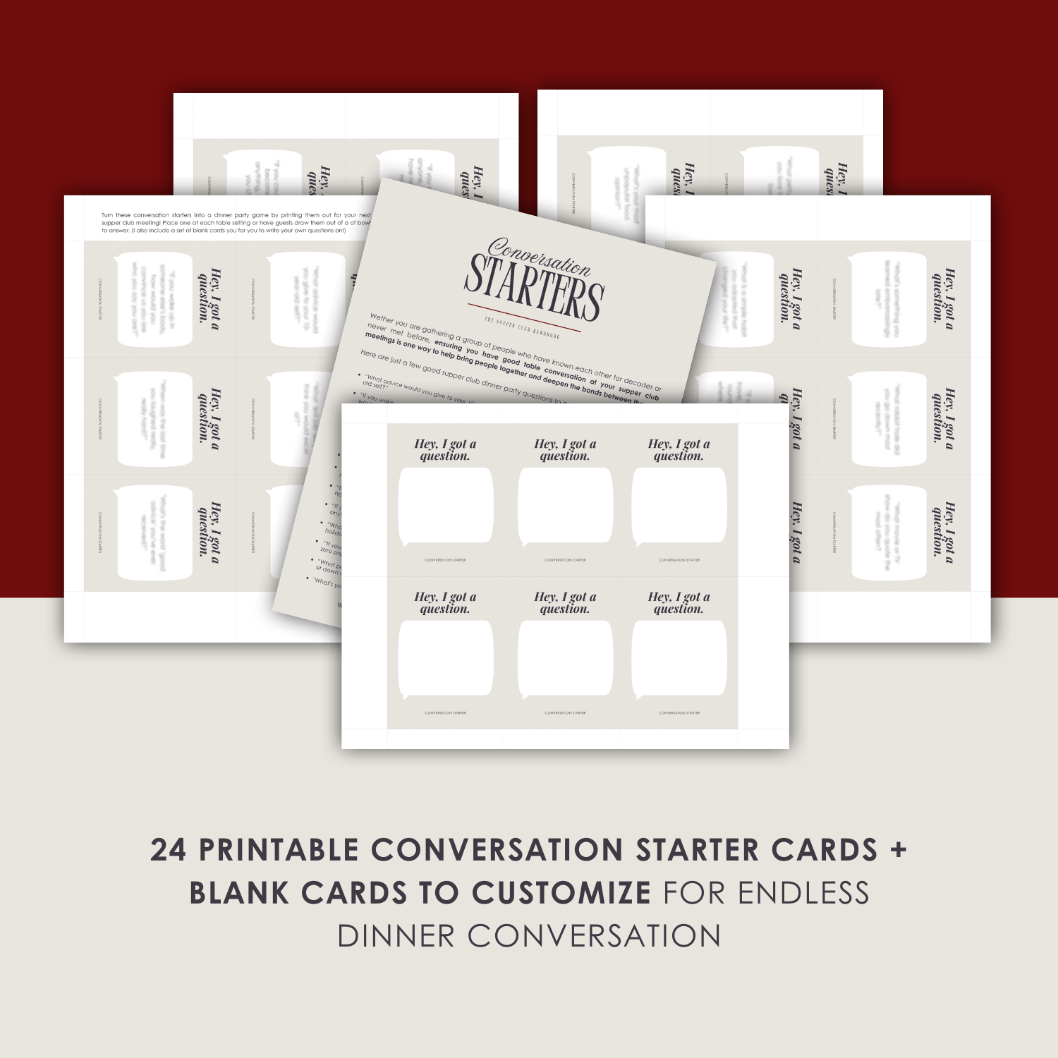 24 Printable Conversation Starter Cards + Blank Cards