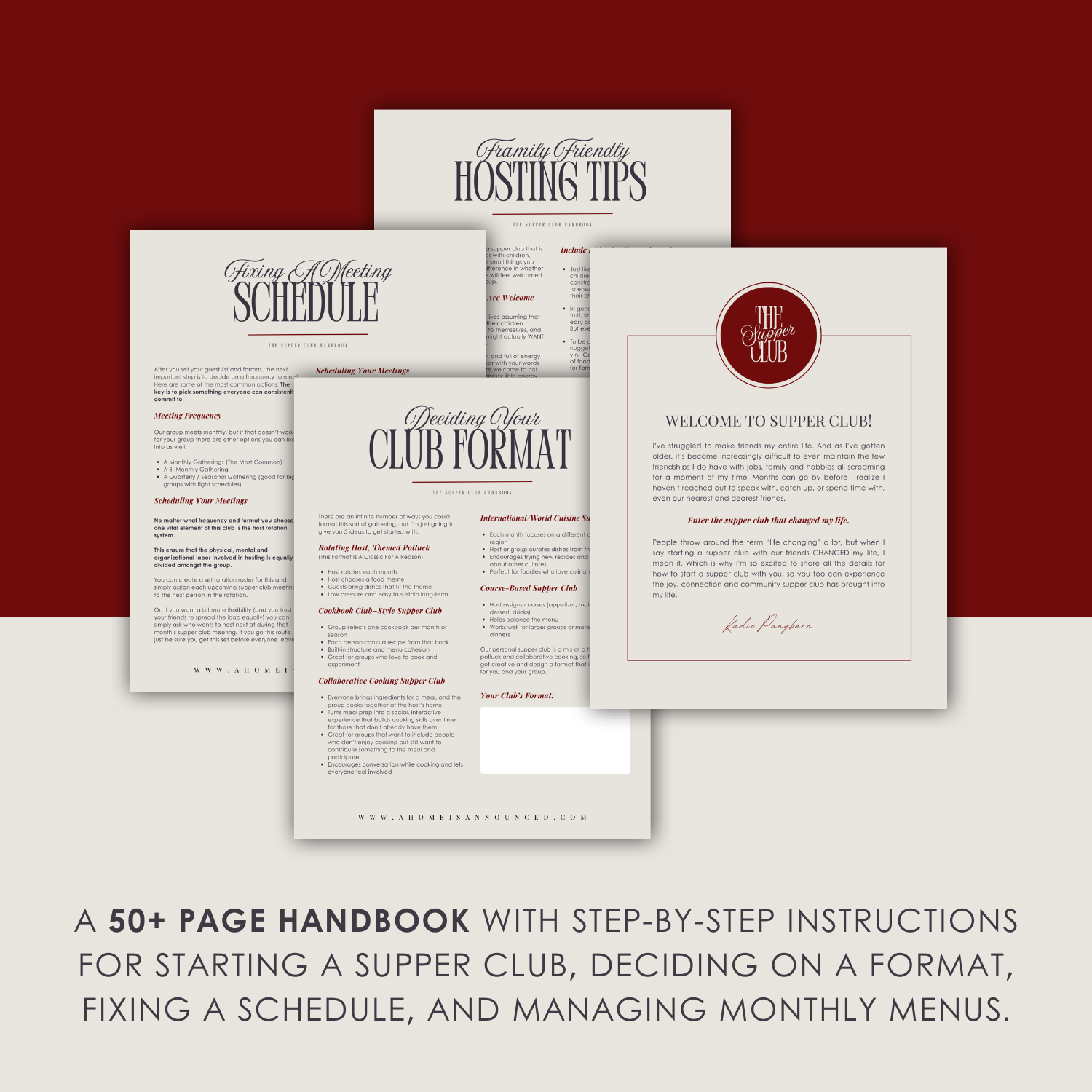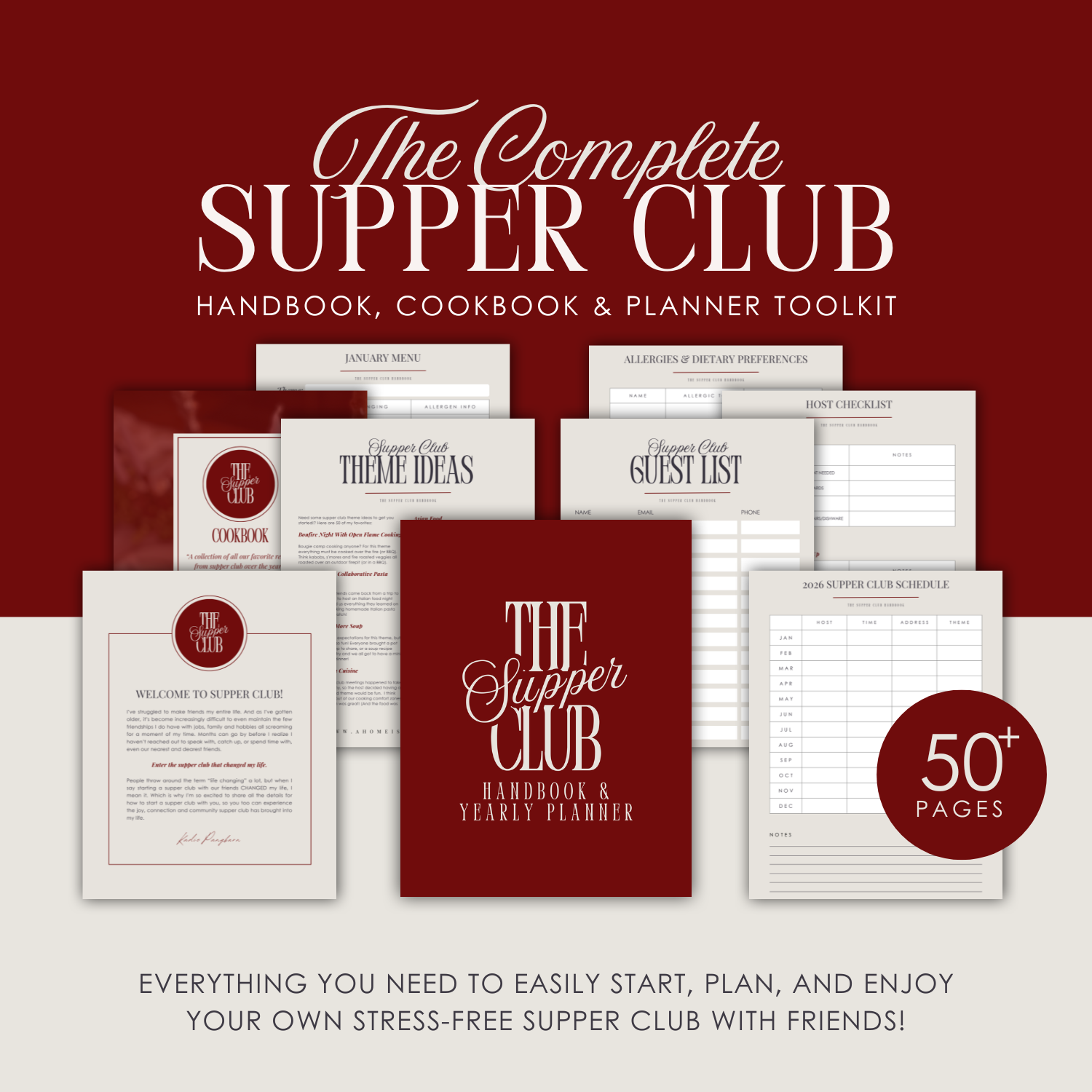 If you’ve been wondering how to start a supper club but feel overwhelmed by the logistics, this all-in-one system was created to make it simple. It gives you a clear, organized plan for gathering your friends around the table each month without the stress of figuring everything out on your own.